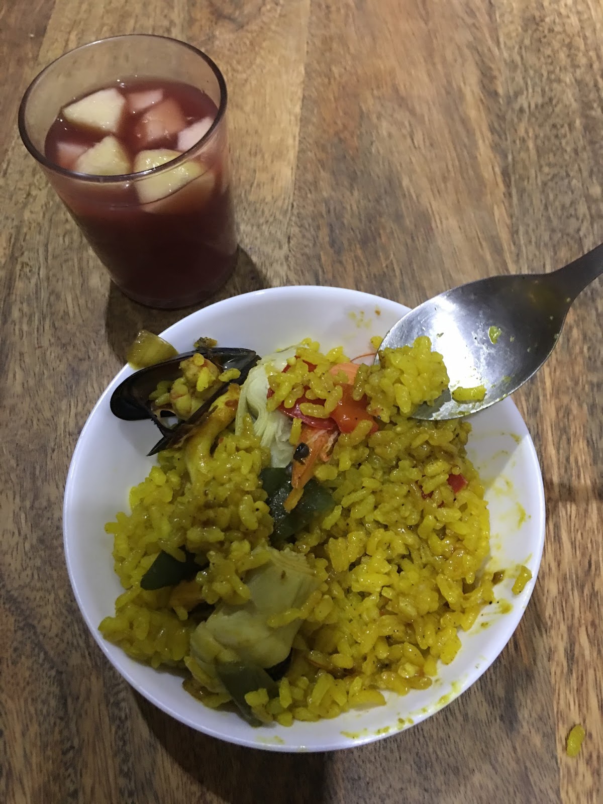 I stayed at "Black Swan Hostel" in Barcelona, and it was good too as they had a paella cooking class every Friday evening (if I'm not wrong) for €5. The cooking process is similar to making a risotto but with more patience and many more ingredients haha.