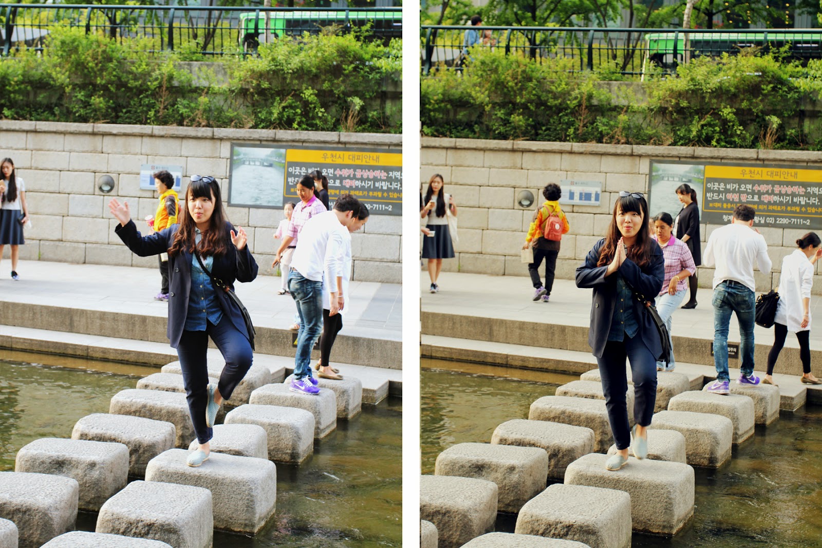 Before I went there, I told myself, "The best place to do that standing yoga stance is on the stepping stones at Cheonggyechon!" Like seriously, this standing yoga pose is kind of like my standard pose when I go travelling. I MUST DO IT EVERYTIME I SEE BIG STONES AND ROCKS. #quirky