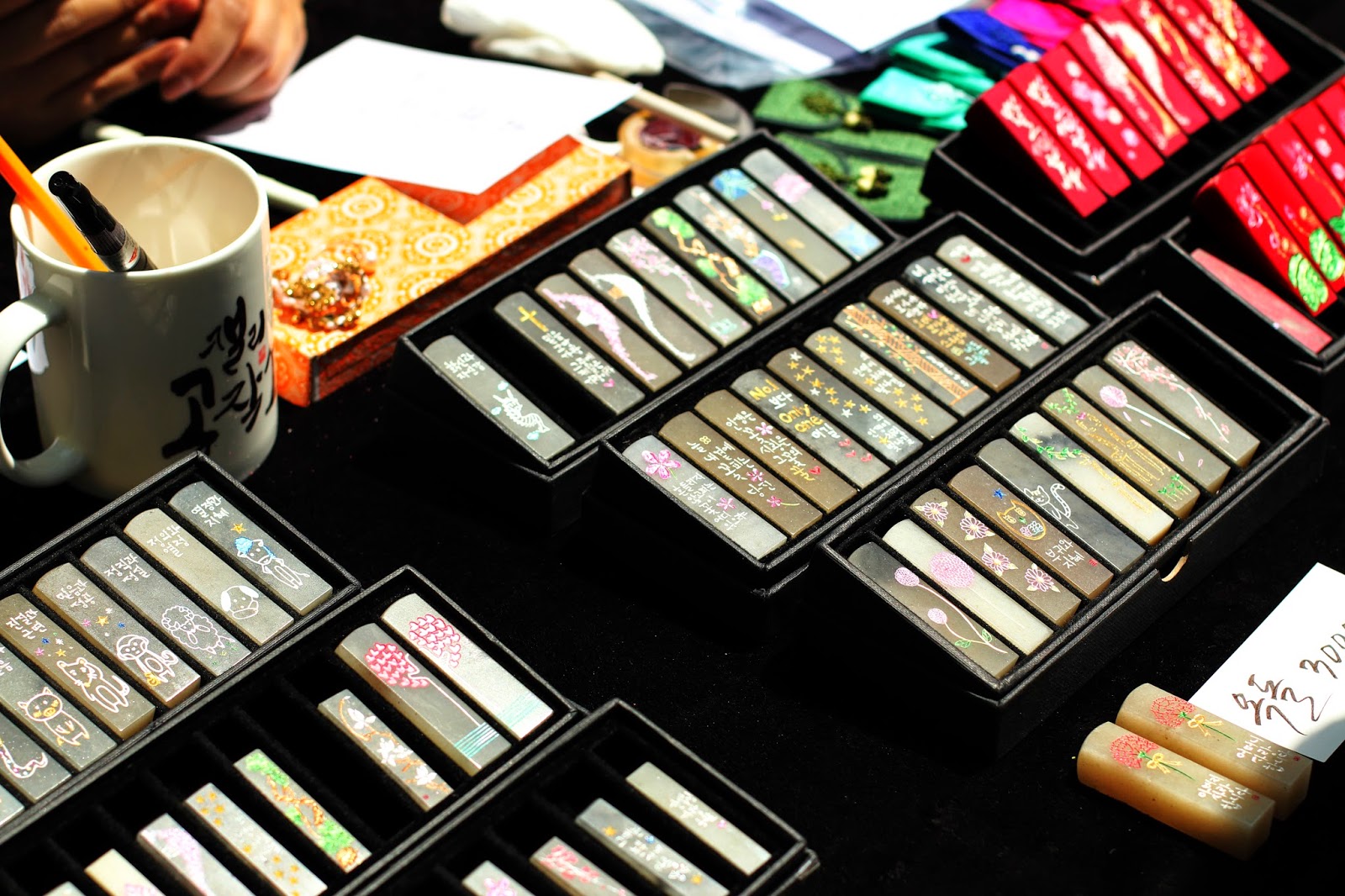 The Free Market features many budding artists displaying their fine artwork or handicrafts both in 2D and 3D. As a tourist, I would specially look for drawings that infuses modern drawing techniques and also traditional korean cultural influences in it. Though some of their works may seem pricey (5,000 won for a small card), it is always good to support fellow artists in their journey to pursue higher standards in their artwork. I really wished Singapore had more of such flea markets featuring artists selling postcards of their own photography/own drawings or handmade stuff like keyboard pieces made into handphone dustcaps e.t.c. instead of flea markets being just a place for young giggly girls and model-wannabes to sell their unwanted clothes that would barely cover any average-sized person's butt or bellybutton. I mean, if you want to put it bluntly, yeah that's the trend in Singapore. Our country seriously NEEDS more of such events like all these Free Markets and the weekend flea market at *SCAPE is definitely not what I'm referring to. Time to gather some uni friends to set up some flea market for budding artists in the future.